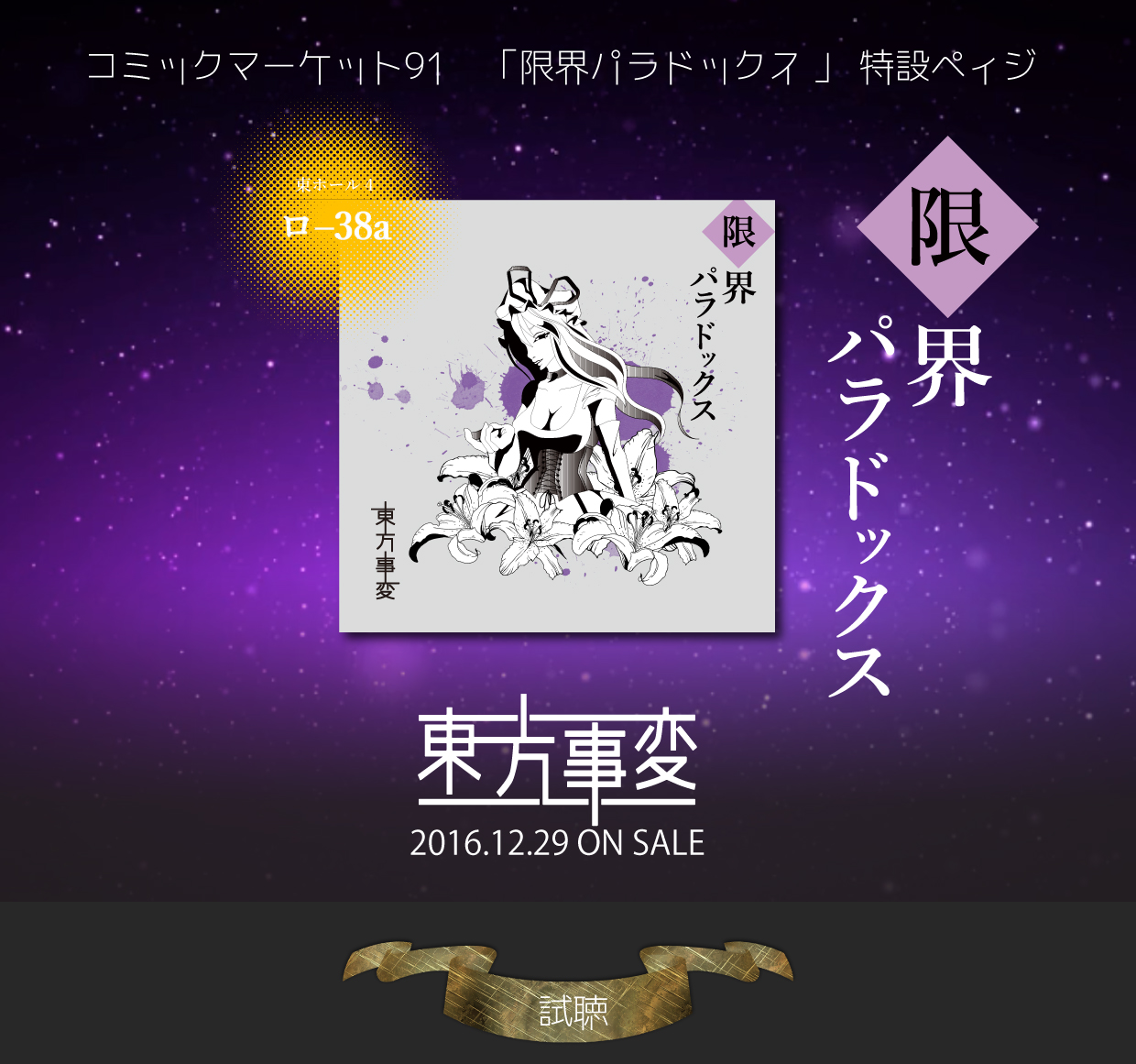 ※当サークルは東方Projectを元にした二次制作音楽サークルであり 上海アリス幻樂団様、ZUN様並びに東京事変とは一切関係がございません